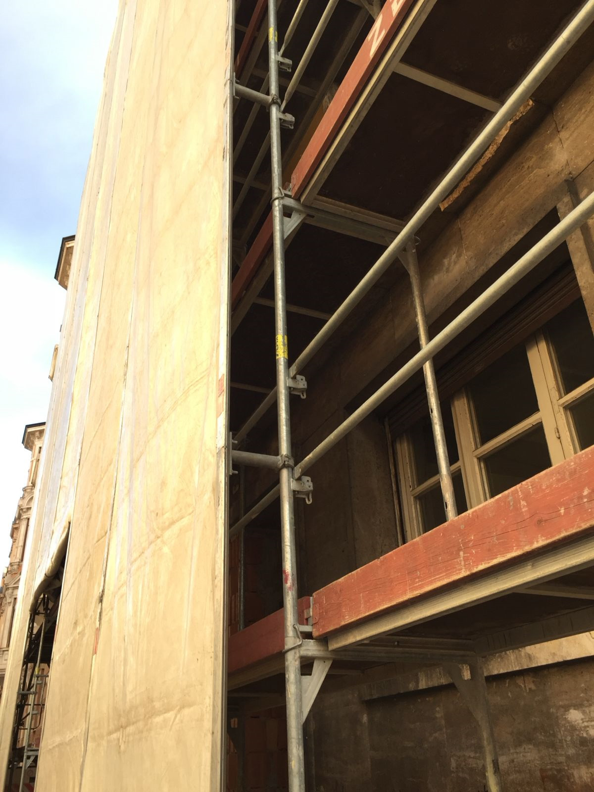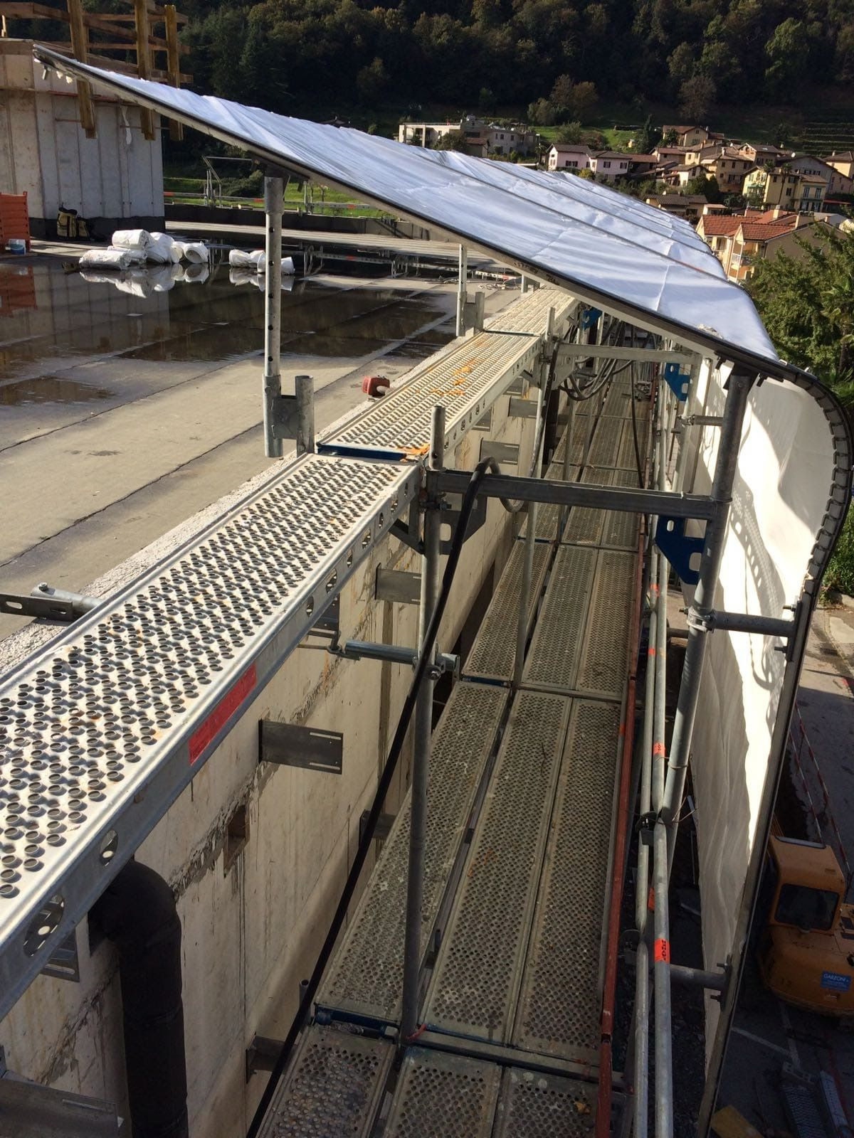 Grazie a guide in alluminio e teli in PVC ad alta resistenza, realizziamo Coperture di Facciata ancorate direttamente all’impalcatura, garantendo protezione da pioggia, vento e freddo durante tutte le fasi di lavoro. La protezione può estendersi fino alla gronda dell’edificio, assicurando un ambiente di cantiere asciutto e sicuro.