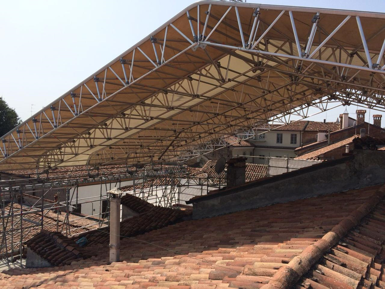 La Copertura a Padiglione è una struttura autoportante, costituita da tralicci orizzontali e verticali progettata per fornire un’involucro PROTETTIVO COMPLETO. Utilizzata nei più svariati ambiti, dalla copertura di piscine alla realizzazione di CAPANNONI in ambito logistico o di EVENTI nel settore dello spettacolo.